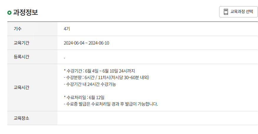 5. 과정정보를 확인합니다.