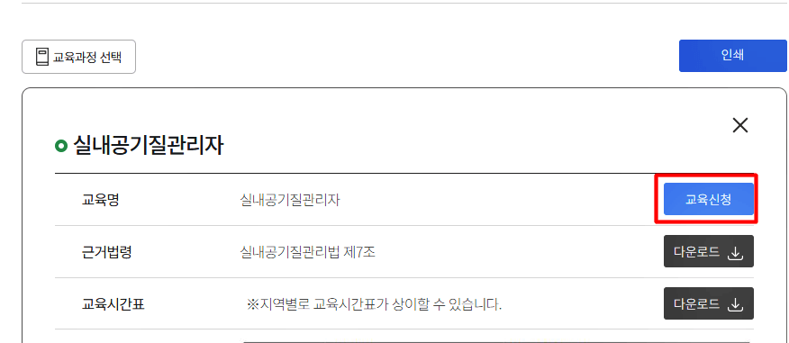 3. 실내 공기질 관리자 교육 신청